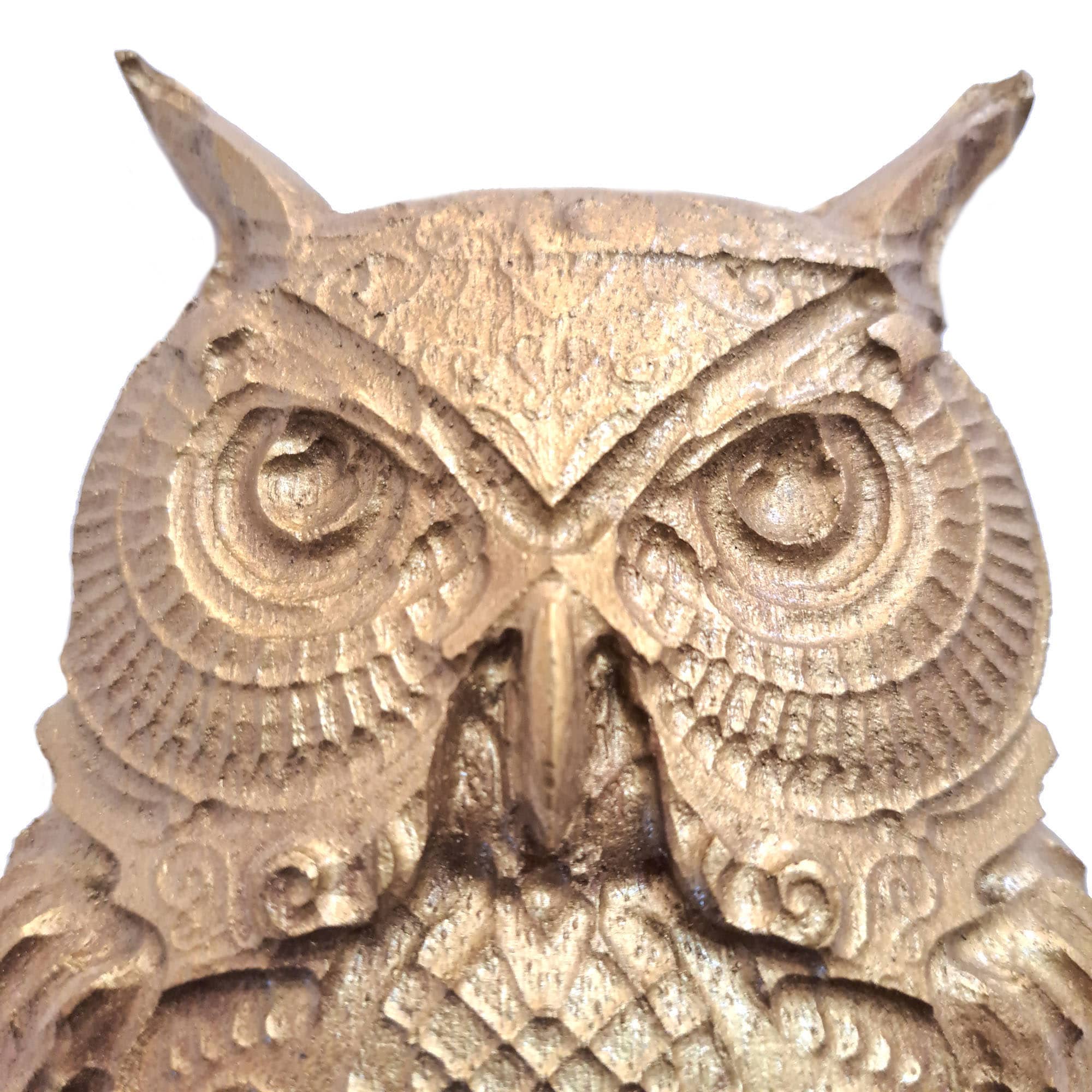 Este búho dorado no solo es una pieza decorativa; es también un amuleto cargado de significado. Colocado en un hogar o espacio de trabajo, se cree que atrae claridad mental, guía espiritual y protección frente a la energía negativa.