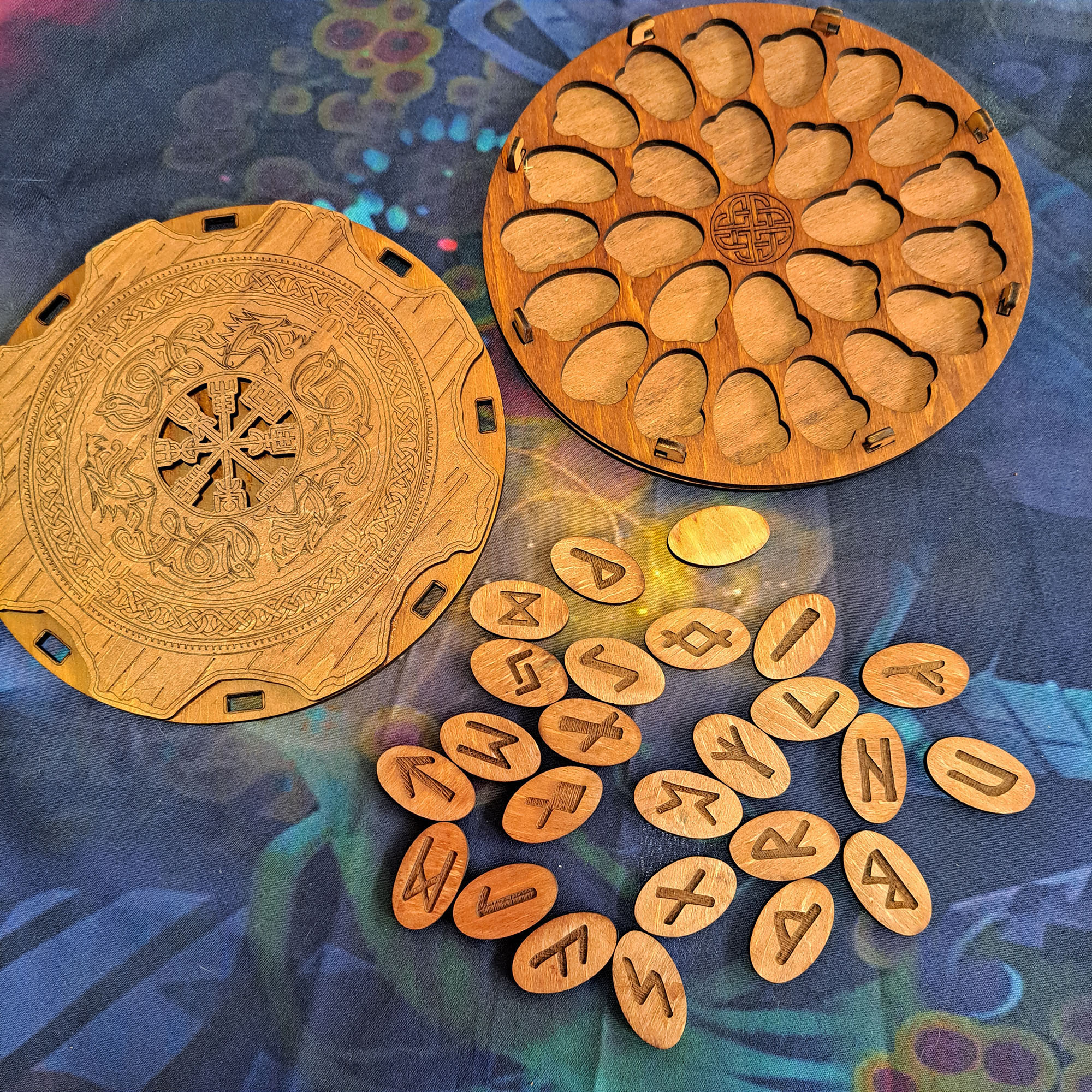 Conecta con la sabiduría nórdica ancestral y añade un toque místico a tu vida con este exclusivo set de runas de madera talladas a mano.