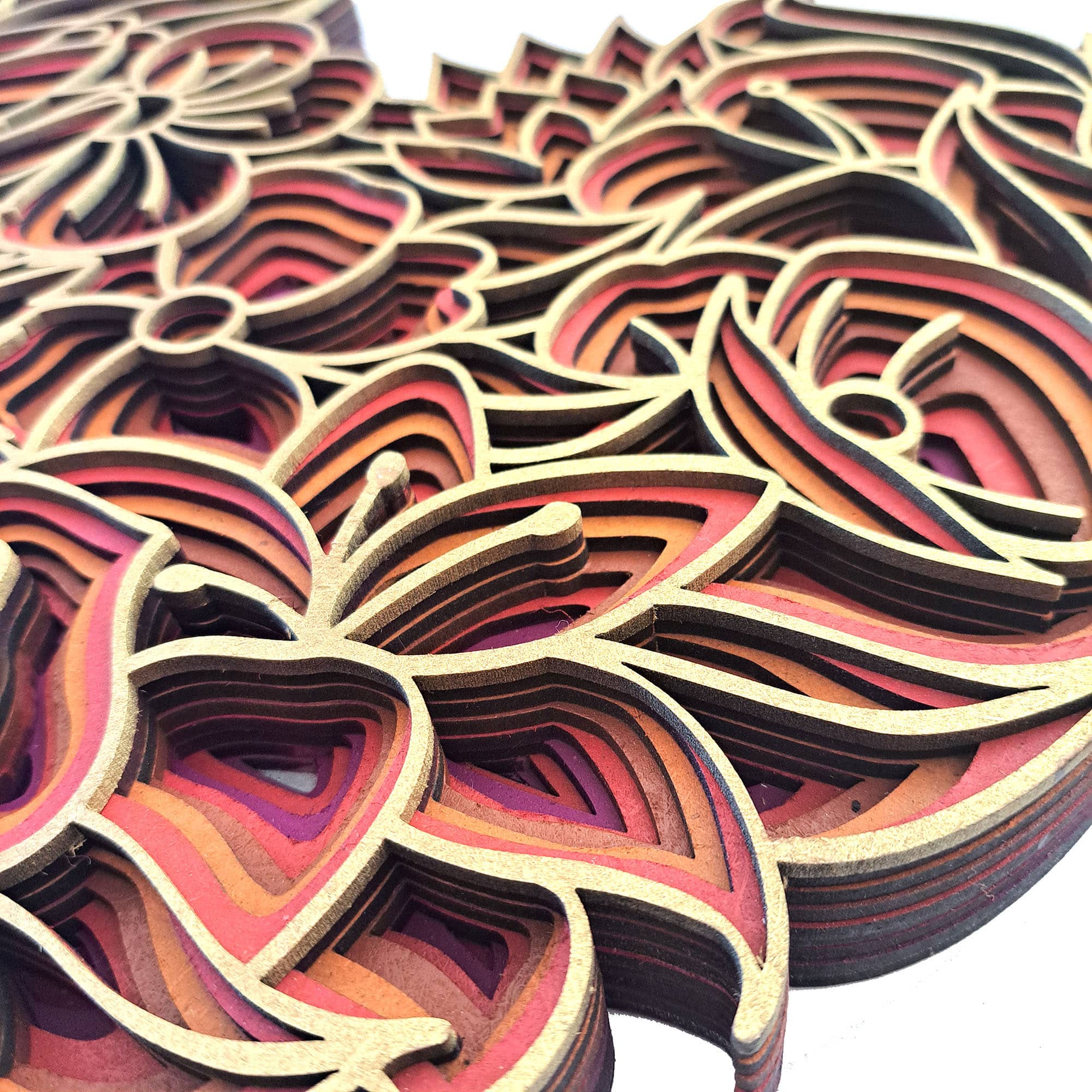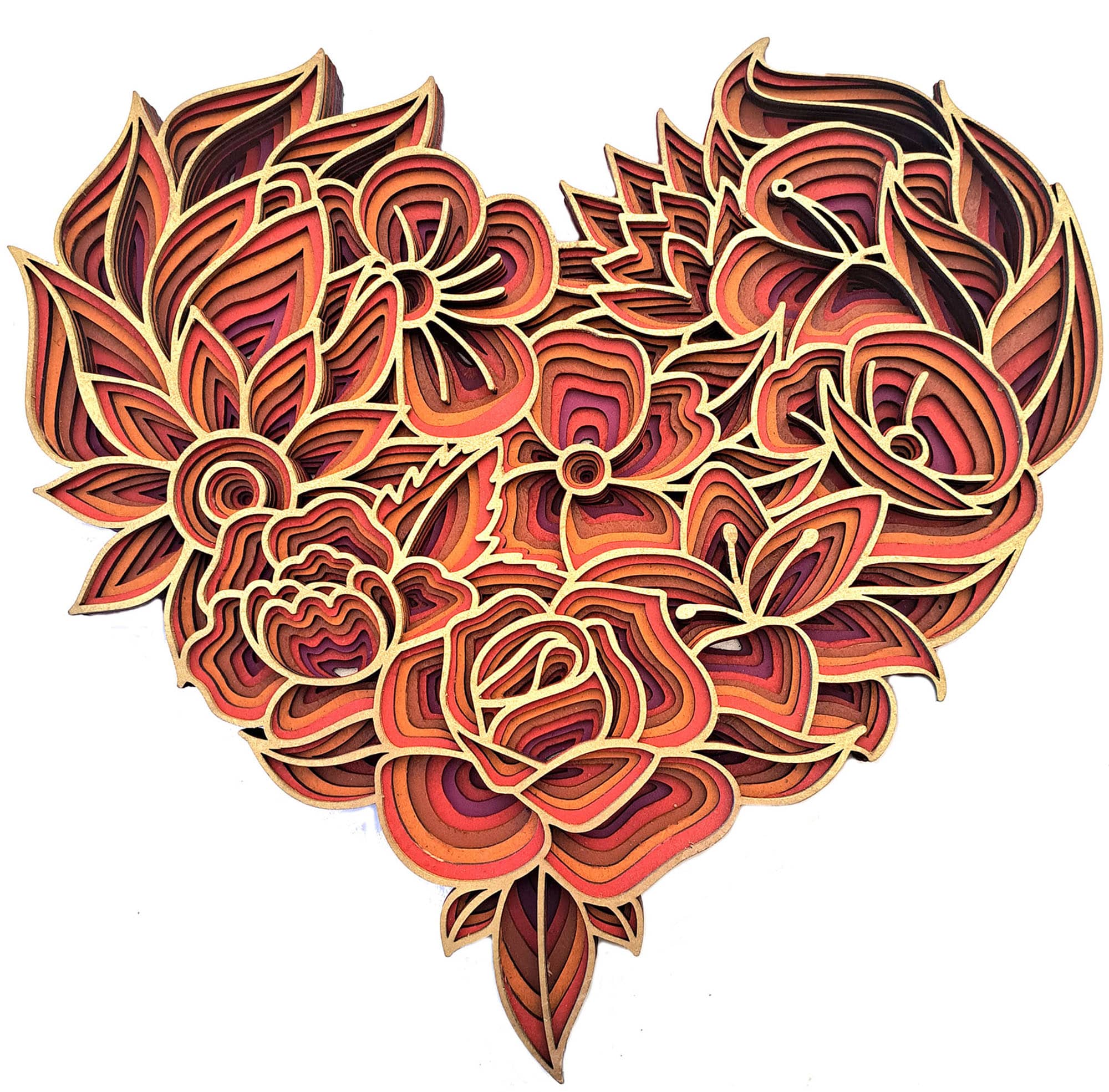 Mándala Corazón con flores multi-capa fabricado en madera artesanal con 11 capas, efecto 3D medidas 39×39 centímetros Cod. Corazón