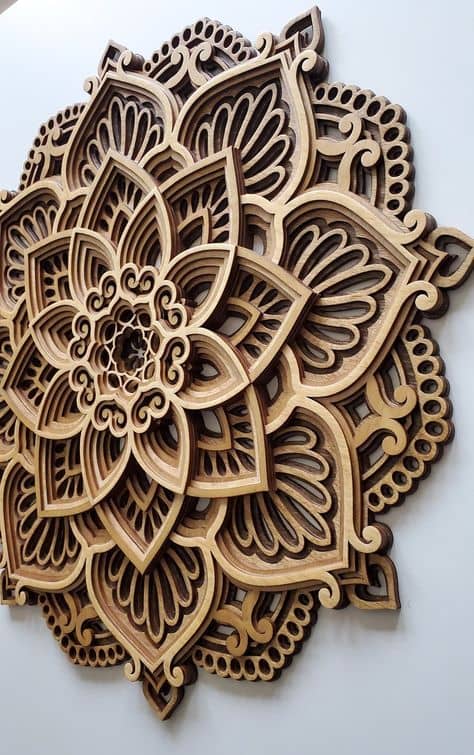 Sumérgete en la belleza y la profundidad espiritual con nuestro exquisito mandala fabricado en madera, una pieza maestra que combina la antigua sabiduría de los mandalas con la calidez y la textura única de la madera. Tallado meticulosamente en varias capas, este mandala no solo es un festín visual, sino también un portal hacia la meditación y la serenidad.