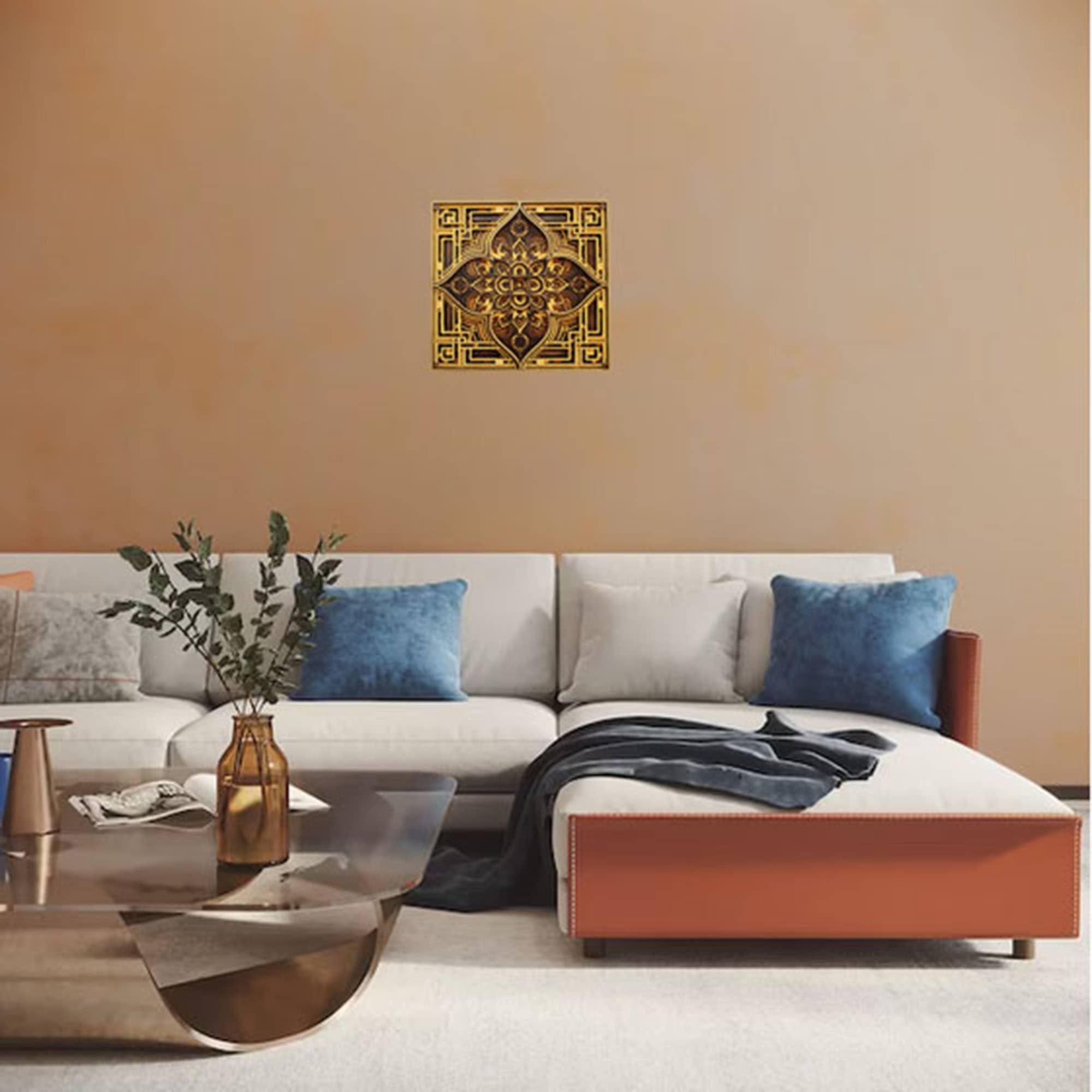 Esta pieza no solo captura la esencia de la tradición mandálica, sino que también incorpora un toque de modernidad en su estética, lo que la convierte en un complemento perfecto para cualquier estilo decorativo, desde el más tradicional hasta el más contemporáneo.