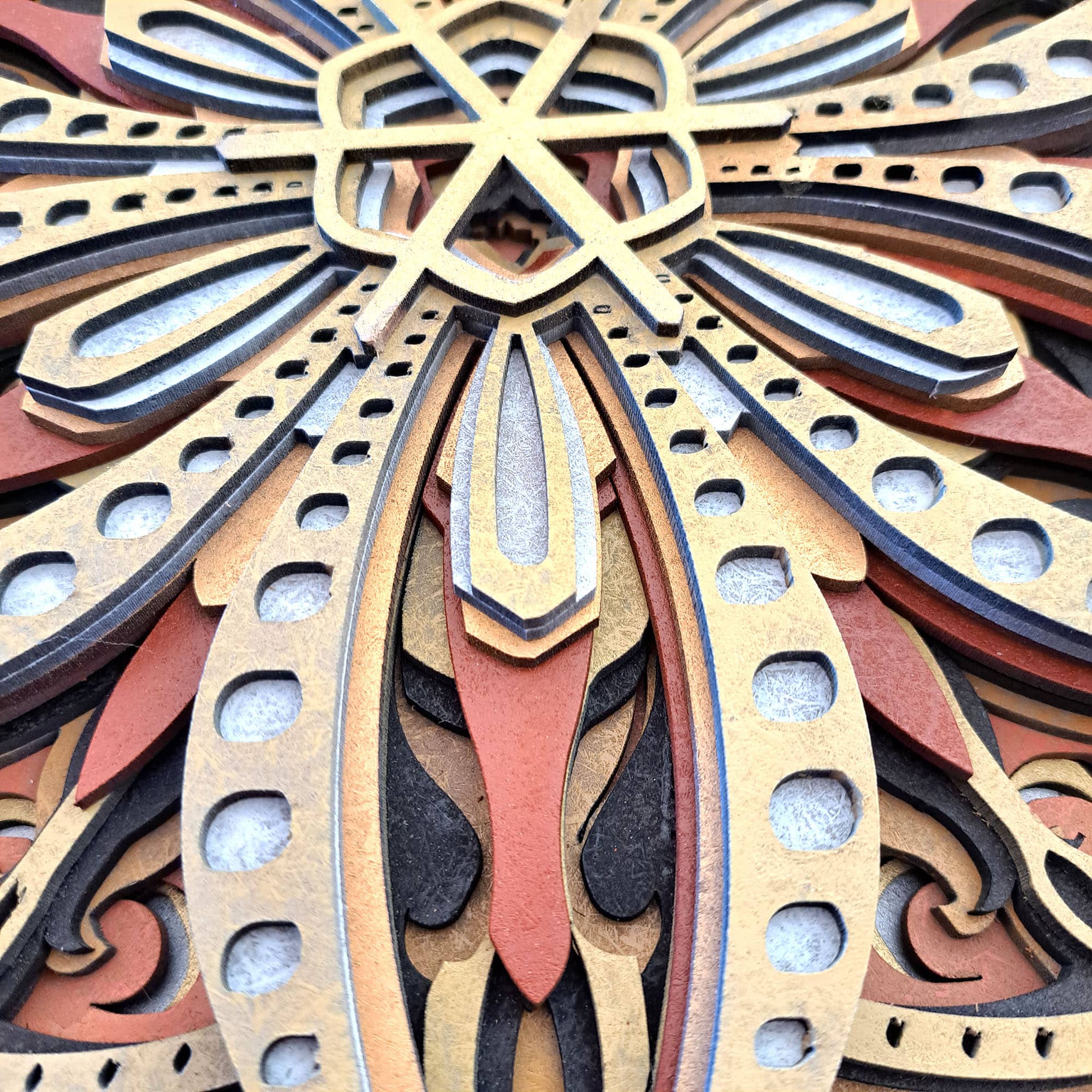 Mándala de madera multicapa