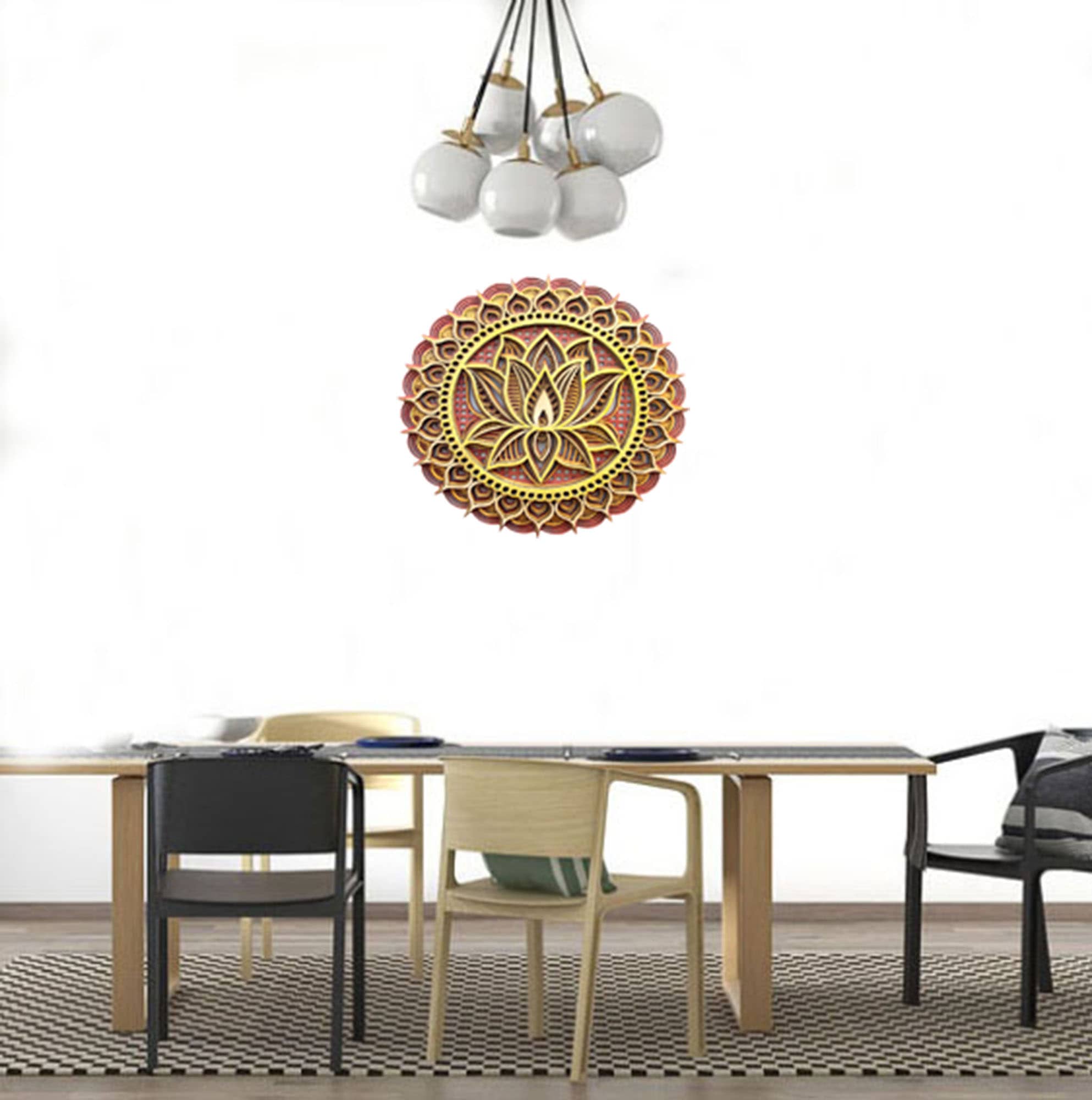 Sumérgete en la belleza y la profundidad espiritual con nuestro exquisito mandala fabricado en madera, una pieza maestra que combina la antigua sabiduría de los mandalas con la calidez y la textura única de la madera. Tallado meticulosamente en varias capas, este mandala no solo es un festín visual, sino también un portal hacia la meditación y la serenidad.