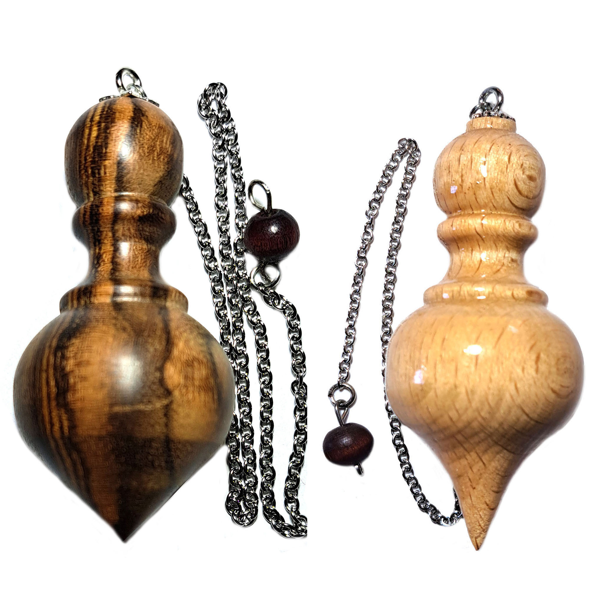 Cada péndulo ha sido cuidadosamente torneado a mano con madera de alta calidad, resaltando la artesanía única y la belleza natural de cada pieza. Su diseño ergonómico garantiza un manejo cómodo y preciso, permitiéndote explorar las energías que te rodean con facilidad. ¡Descubre el equilibrio perfecto con nuestros exclusivos péndulos de madera! Estas hermosas piezas no solo son una herramienta de radiestesia, sanación, adivinación etc. Son un elemento decorativo