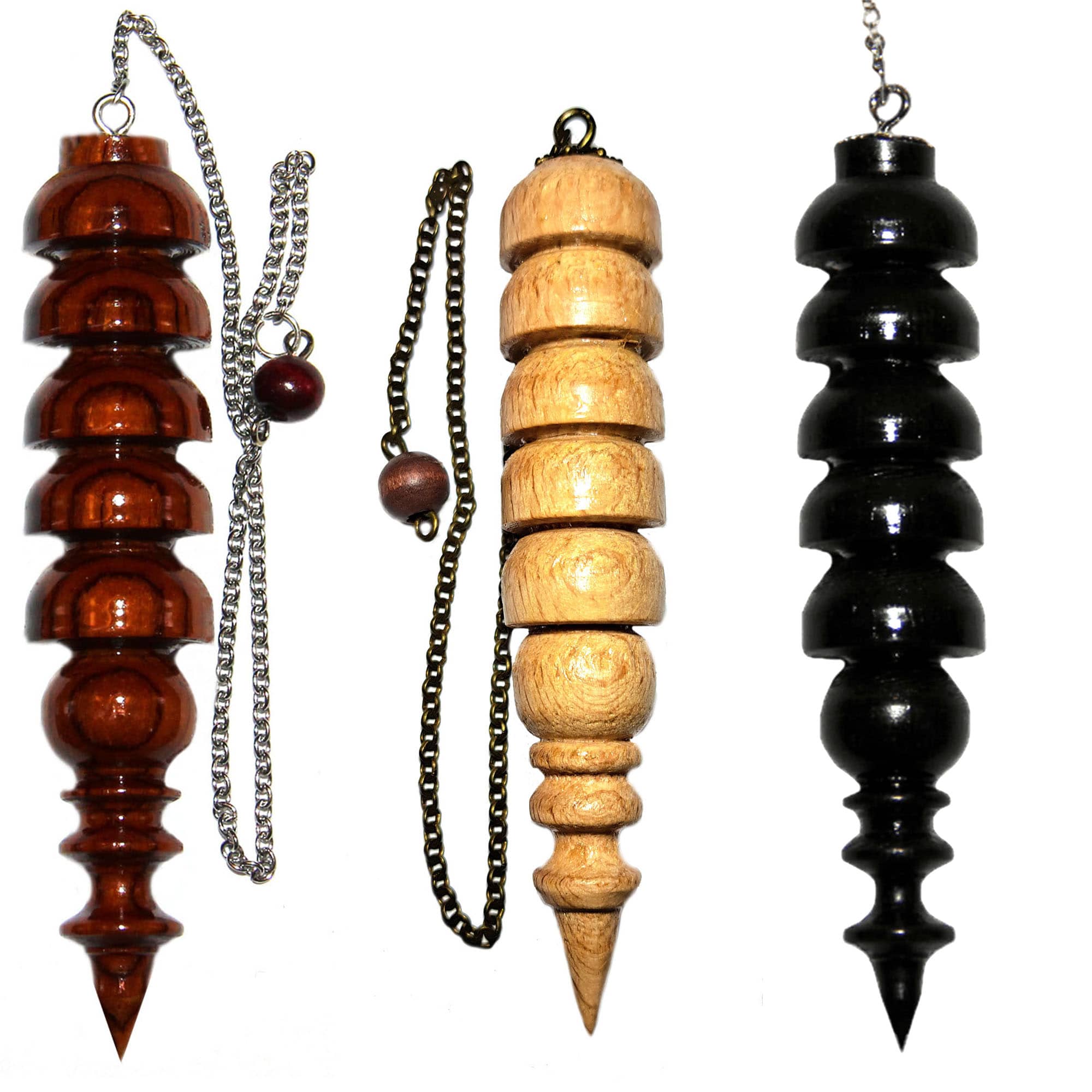 Los péndulos artesanales suelen ser personalizables no solo en forma y tamaño, sino también en tipo de madera utilizada (como roble, nogal, olivo o cedro), cada una con sus propias propiedades energéticas. Esto permite elegir un péndulo que resuene mejor con la intención del trabajo o con la energía personal del radiestesista.