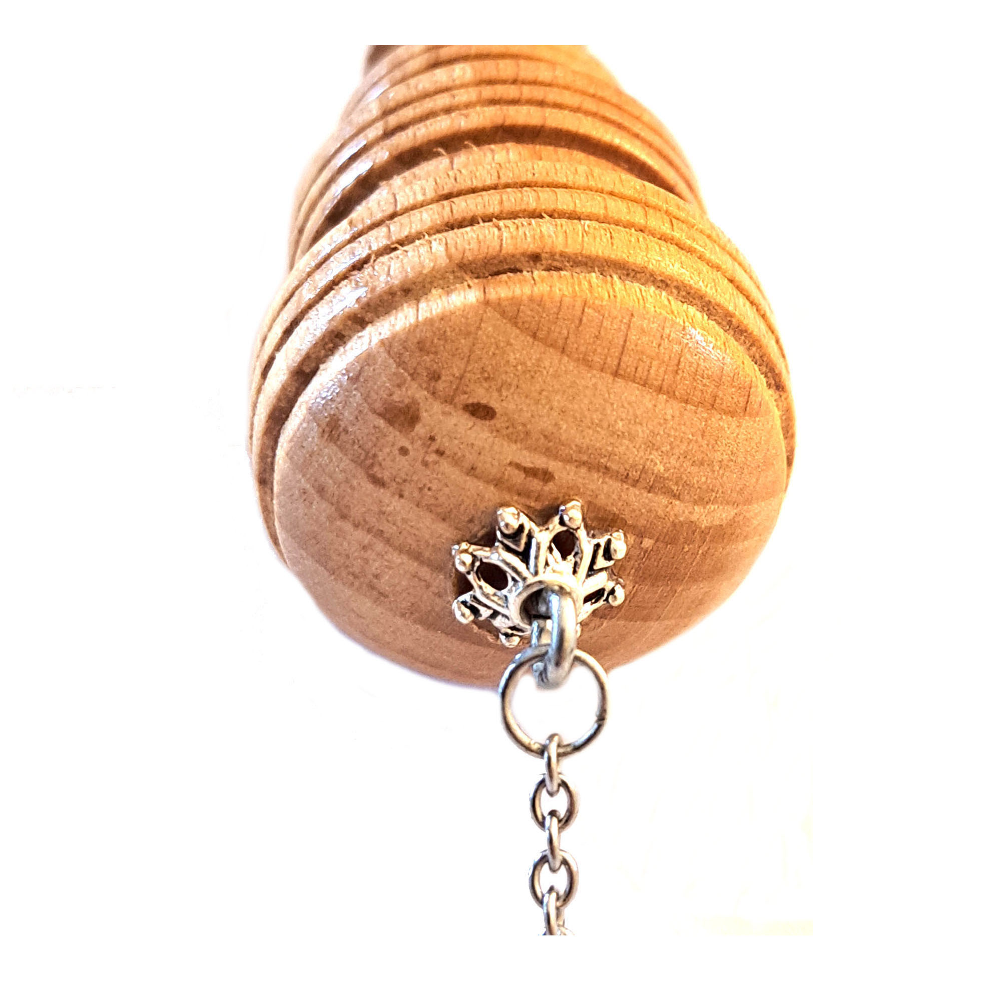 - Este péndulo está fabricado en madera exótica, lo que lo hace especialmente valioso por las propiedades energéticas que se asocian con este tipo de materiales naturales. La madera exótica no solo tiene una apariencia única, sino que también aporta una mayor conexión con la naturaleza y la tierra.